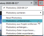 Versehen Sie die beiden Photostorys mit aussagekräftigen Namen. Dies können Sie im Kontextmenü des Photostory-Reiters tun.