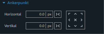 Geben Sie einen absoluten (px) oder relativen Wert (%) ein, um das Objekt in Bezug auf den Ankerpunkt zu verschieben. Die Position des Ankerpunkts bleibt unverändert. Klicken Sie auf die Einheit, um zwischen Pixel und Prozent zu wechseln. |