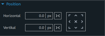 Mit diesen Werten verschieben Sie das Objekt in Bezug auf seinen Ankerpunkt. Geben Sie einen absoluten (px) oder relativen Wert (%) ein, um die Position des Ankerpunkts festzulegen. Das Objekt verschiebt sich in Abhängigkeit des vorher eingestellten Ankerpunkts. Klicken Sie auf die Einheit, um zwischen Pixel und Prozent zu wechseln. |