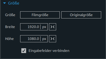 Mithilfe der Eingabeschaltfläche können Sie für Breite und Höhe einen absoluten (px) oder relativen Wert (%) eintragen. Der relative Wert bezieht sich auf die Filmgröße, der absolute Wert auf die Größe des Objekts. Klicken Sie auf die Einheit, um zwischen Pixel und Prozent zu wechseln. |