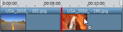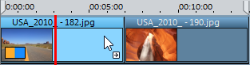 Fotos einfügen: Halten Sie beim Ziehen von Fotos in die Timeline zusätzlich die Strg-Taste gedrückt und legen Sie das Foto zwischen zwei bestehenden Fotos ab, um es einzufügen. Nachfolgende Fotos werden nach hinten verschoben, ohne das Lücken oder Überschneidungen entstehen. |