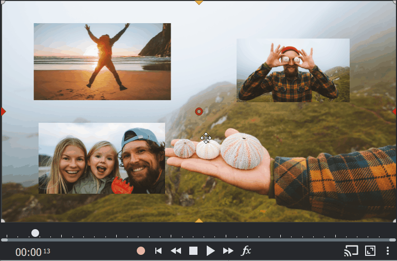 Sie können direkt im Vorschaumonitor auf ein Objekt klicken, um es auszuwählen. Zusätzlich steht Ihnen eine Bounding Box zur Verfügung, die Ihnen bei eigenen Animationen eine präzise Steuerung ermöglicht.