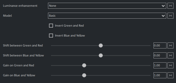 The assignment of determined color attributes in the red-green channel is swapped. |