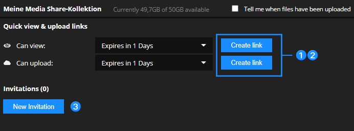 Select Quick view & upload links in this section, to configure if your collaborators should only be allowed to view and download documents or also be allowed to upload files.