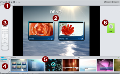 Film menu: The upper layer includes the film menu, which is only used if a project contains multiple Photostories.