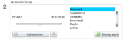 Add emotion: This button inserts the selected mood at the current position. MAGIX Soundtrack Maker will then suggest a new position for the next emotion by repositioning the position slider. You can also position it elsewhere and add different moods.