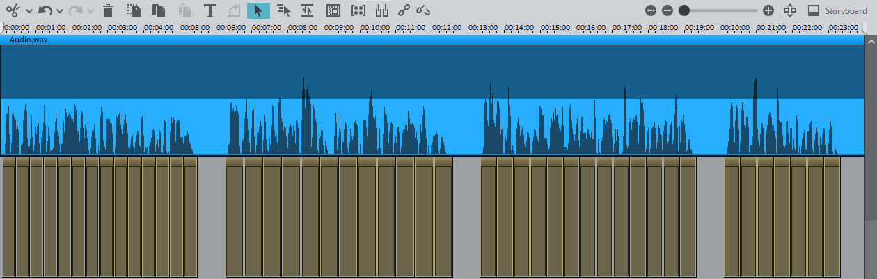 Die erzeugten Titelobjekte werden in einer neuen Spur in das Projekt eingefügt. Wechseln Sie dazu am besten in den Timeline-Modus.
