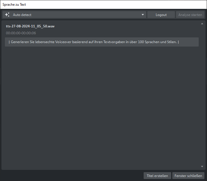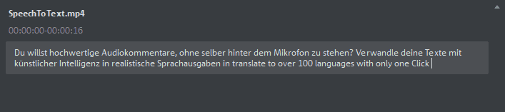De functie 'Speech-to-Text' herkent gesproken taal in audio- en videobestanden en zet deze om in gesynchroniseerde titelobjecten die worden weergegeven als tekst op afzonderlijke sporen. Deze kunnen flexibel worden aangepast, gemarkeerd of geëxporteerd.
