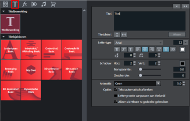 Door verschillende teksteffecten kunt u de titels gedetailleerd bewerken: lettertype, lettergrootte, uitlijning, regel- en tekenafstand.
