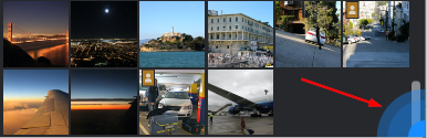 Zodra u in Photo Explorer minimaal 6 objecten markeert, verschijnt rechts onder een halve cirkel.