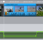 - Bestätigen Sie die Angaben mit OK. Die Tonspur des markierten Videos wird nun am lautesten zu hören sein. Bei reinen Tonspuren auf der 4. Spur wird die Lautstärkekurve eingeblendet und Sie sehen den abgesenkten Bereich. An den Anfassern können Sie die Absenkung auch manuell anpassen.