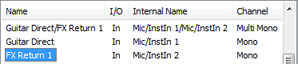 複数のモノラル ポートの名前を Mic/InstIn 1/Mic InstIn 2 から「ギター」に変更した後でこのポートをステレオに切り替えると、左右のチャンネルの名前は「ギター Left」、「ギター Right」に変更されます。