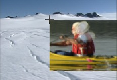 プリセット選択を選択するか、[ビデオ プレビュー]セクションでドラッグして選択範囲を作成します。この選択範囲は、クリップボードの内容を表示します。次の例では、雪景色が現在のカーソル位置で、カヤックの漕ぎ手がクリップボードにコピーされています。