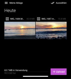 デバイスから VEGAS Hub クラウドストレージにファイルをすでにアップロードしている場合は、アプリがそれらのファイルを一覧表示します。