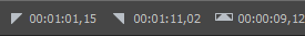 編集するにはボックスをダブルクリックします。00:00:25.381 などのタイムラインの値、または、+/- と数値の入力による相対値を入力できます。例えば、フレームでタイム ルーラーが表示されている場合は、+10 を入力して、選択の開始、終了、または長さに 10 フレームを追加できます。