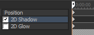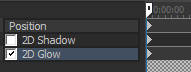 [位置]、[2D シャドウ]、および[2D グロウ]キーフレーム行をクリックして、行を選択し、プリセットを適用する場所にカーソルを置きます。