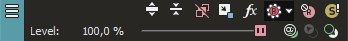 トラック ヘッダーの レベル スライダは、トラックのコンポジット レベルに作用します。スライダは、すべてのトラックの全体的な不透明度を調整するトリミング コントロールとして機能したり、トラックの不透明度のオートメーション設定を調整します。