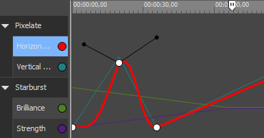 ビデオ エフェクトの場合、使用されている補間カーブはキーフレーム間のラインからわかります。