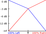 このモードは、ステレオ ファイルをパンするときに特に便利です。ステレオ フィールドを横切るようにパンすると、ステレオ イメージはスピーカー間を横切るように現れます。どちらかのチャンネルに向けてパンしていくと、そのチャンネルに反対側のチャンネルからの信号が追加されていき、最後には両方のチャンネルの信号が 1 つのチャンネルに最大音量で出力されます。 このモードではリニア パン カーブが使用されます。 IMPORTANT チャンネルが追加されるときにクリッピングが発生することがあります。[マスタ バス]ウィンドウのメーターを確認して、トラック ボリュームを調整してください。 |