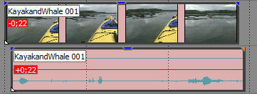以下の例では、オーバーラップしているオーディオとビデオはいずれも KayakandWhale 001.avi から作成されており、同期を判別するためにこれらが比較されます。