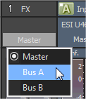出力デバイスを選択するには、[出力]ボタンをクリックしてメニューからバスを選択します。