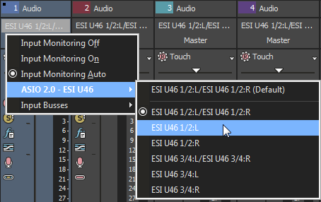 トラックの録音用入力を選択するには、[入力]ボタンをクリックしてメニューからポートを選択します。
