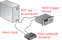 トリガ デバイスから MIDI タイムコード (MTC) がコンピュータに送信されるように設定します。