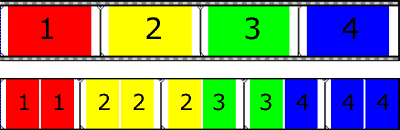 CIFRAPelícula de 24 fps (arriba) y vídeo NTSC resultante con campos de pulldown 2-3-3-2 (abajo)