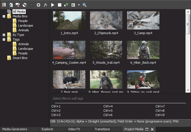 La vista detallada de la ventana de medios de proyecto le ayuda a clasificar los archivos de medios mediante sus atributos, pero si desea tener mayor control, puede crear contenedores. Los contenedores son carpetas dentro de los proyectos que sirven para organizar los archivos de medios.