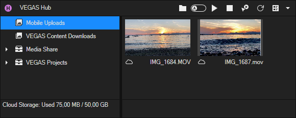 Esta colección muestra el contenido de su almacenamiento en la nube de VEGAS Hub.