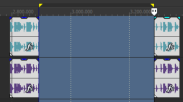 Si copia una selección de tiempo, las porciones de los eventos que están dentro de ella (en todas las pistas) se colocarán en el portapapeles:
