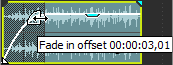 Pase el puntero sobre la esquina superior izquierda o superior derecha de un evento de audio hasta que el cursor se muestre como