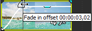Se puede ajustar la opacidad al principio y al final de un evento de vídeo para aplicar un desvanecimiento de entrada o salida sobre un fondo. Este fondo puede ser otro evento de vídeo o un color de fondo.
