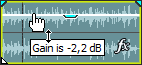 , arrastre la línea de volumen hasta el nivel que desee. A medida que arrastre la línea, se indicará la ganancia del evento en dB.