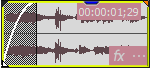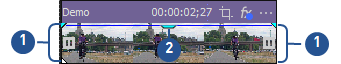 El controlador en el centro superior de un evento de vídeo controla la opacidad general de ese evento y, en el caso de un evento de audio, el volumen general de ese evento. 2.