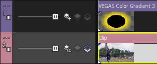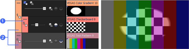 En los siguientes ejemplos se demuestra cómo afecta cada uno de los modos de composición a dos pistas simples. La pista uno es un evento de medios generado con un borde transparente.