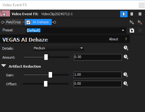 Este plug-in asistido por la IA analiza su vídeo en busca de elementos borrosos como humo, niebla, bruma y otros efectos similares, los elimina y crea así una imagen más clara y nítida del elemento principal del vídeo.