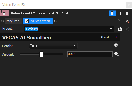 Haga clic en la pestaña Efectos de vídeo y seleccione Suavizado por IA de la lista.