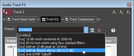 Marque la casilla de verificación correspondiente para cada plug-in que desee aplicar o quite la marca de la casilla de verificación para pasar por alto un efecto sin eliminarlo de la cadena.