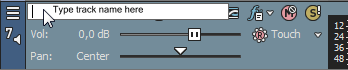 y especifique el nombre de la pista.Si no ve la tira de escritura, expanda la pista para mostrarla. Se mostrará la tira de escritura sobre el control deslizante Volumen.