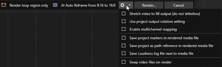Nur den Timeline-Loop-Bereich rendern. Diese Schaltfläche wird angezeigt, wenn eine Loop-Auswahl aktiv ist.