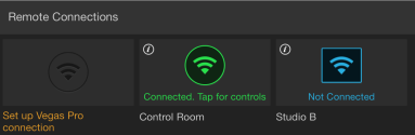 Vegas Pro Connect saves connection profiles that allow you to use the app with a number of computers running VEGAS Pro.
