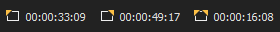 Estos cuadros muestran la longitud del evento seleccionado, el intervalo de tiempo seleccionado y la duración total del proyecto. Si no hay ninguna selección en la escala de tiempo, esta área muestra la posición actual del cursor.