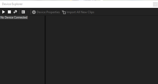 Se nenhum clipe estiver selecionado na janela Device Explorer, todos os novos clipes serão importados.