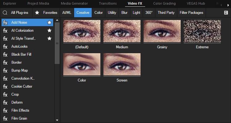 Você pode arrastar uma miniatura de predefinição para uma faixa, evento ou para a janela Video Preview (Visualização de vídeo ) para aplicar o efeito.