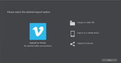 With this option you can convert a movie including all objects, effects settings, fades, texts and others into a video file and save it to a computer.