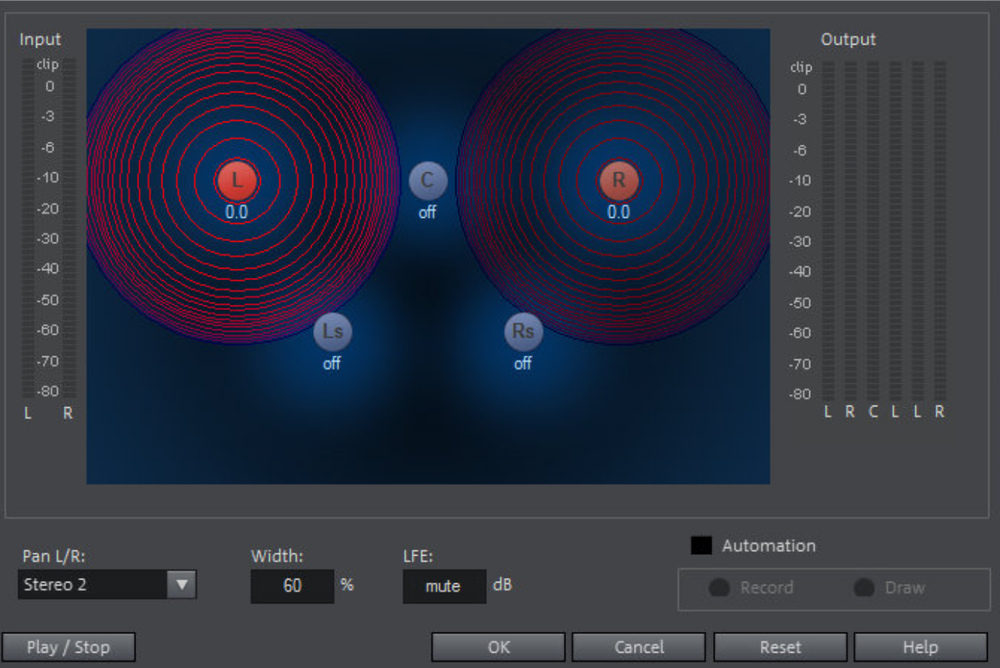 NOTE There is no automation of the parameters for width and LFE, of the distance between the left and right source in "Stereo 2" mode, or of the loudspeaker positions.