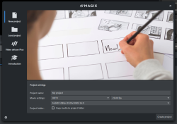 When you start Video deluxe for the first time, the start dialog will appear. This dialog allows you to define the presets for the project and select whether to begin to Create a project or Load an existing project.