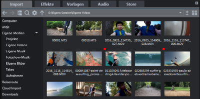 Haz clic en el símbolo de importación para cargar el archivo multimedia seleccionado de forma completa en la ventana de proyecto. Al importar con el botón de importación, se utiliza el modo de inserción actualmente establecido.