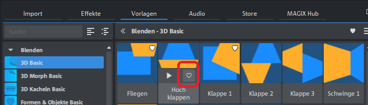 Aquí encontrarás las plantillas que se pueden utilizar directamente en diferentes categorías (transiciones, plantillas de título, etc.) |